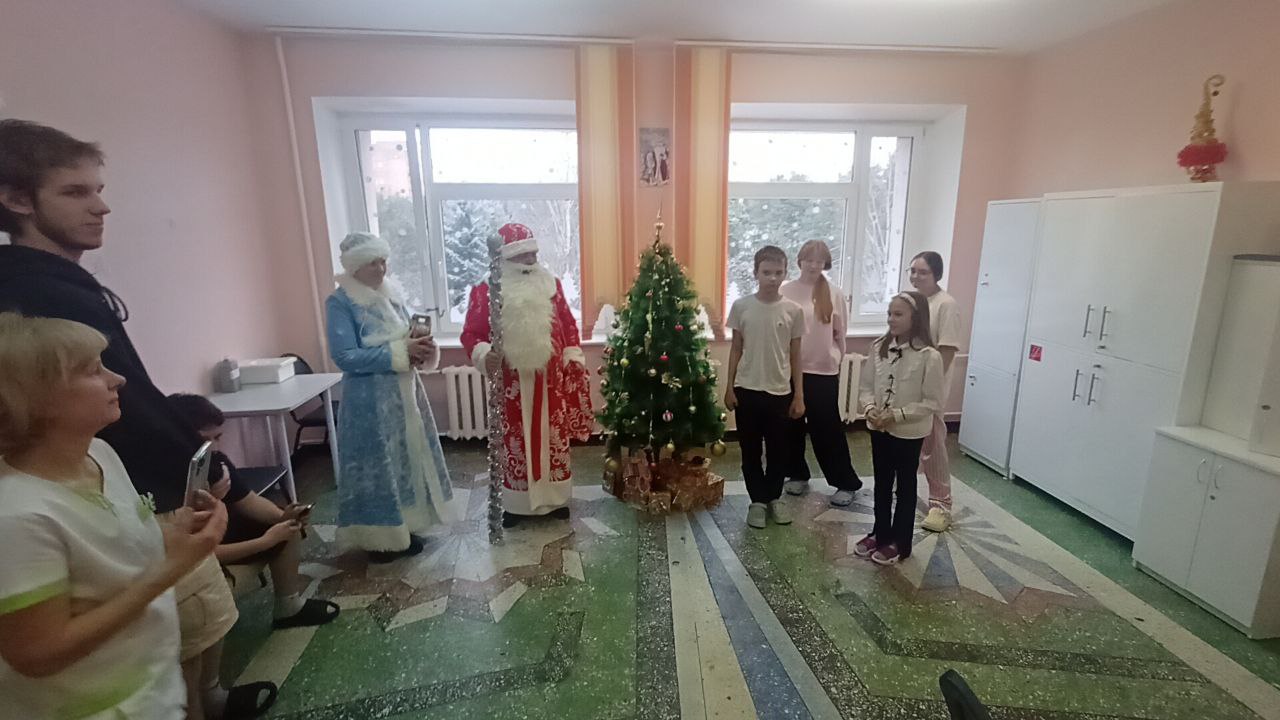 Дед Мороз и Снегурочка поздравили ребят с Новым годом и Рождеством, вручили новогодние подарки, пожелали здоровья, скорого выздоровления, успехов и праздничного настроения.