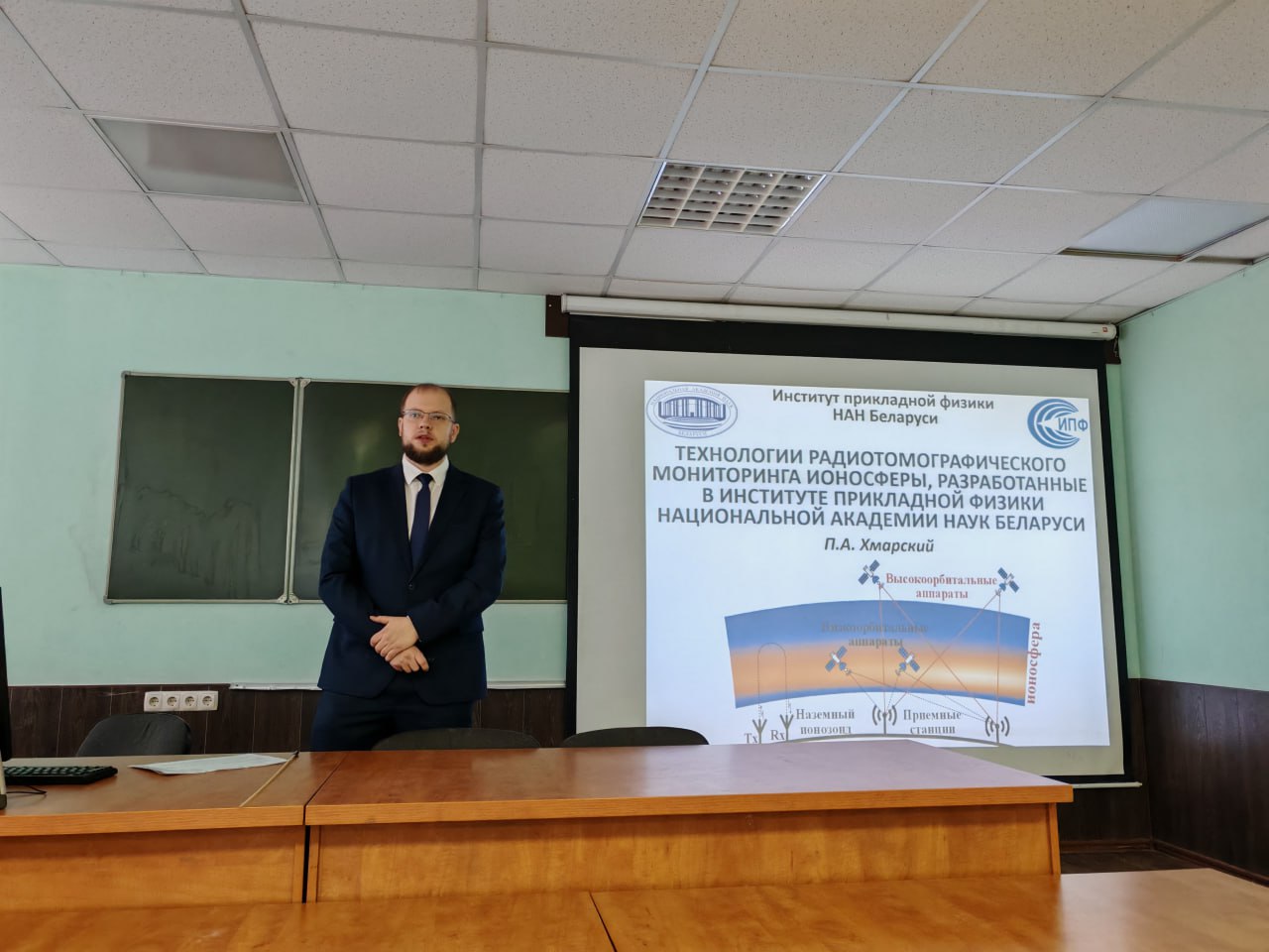 Участникам семинара представлен доклад старшего научного сотрудника Петра Хмарского «Технологии радиотомографического мониторинга ионосферы».