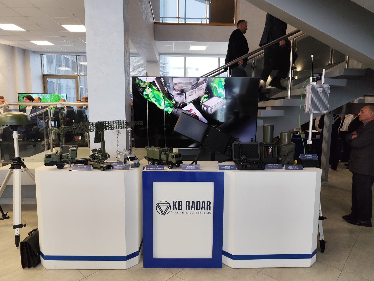 В рамках мероприятия вниманию посетителей представлены инновационные образцы ВВСТ производства ОАО «КБ Радар», в том числе комплексы блокираторов сигналов управления и навигации мультикоптеров «Фумигатор» в возимом и носимом вариантах исполнения, обнаружитель-пеленгатор сигналов мультикоптеров «Шапель», комплекс обнаружения и местоопределения мультикоптеров «Дроноскоп», а также масштабные модели других серийно производимых и перспективных разработок в сферах радиоэлектронной борьбы и радиолокации.